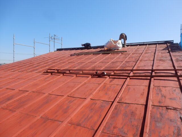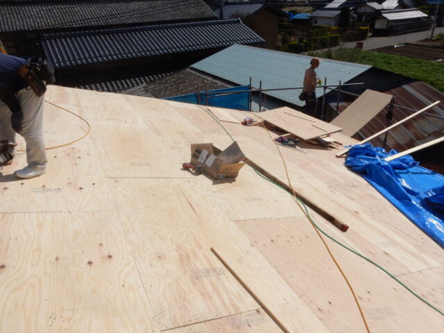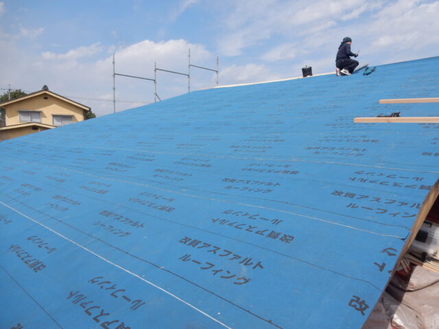下地工事が終わった後は新規で屋根を施工する前にルーフィングを施工していきます。