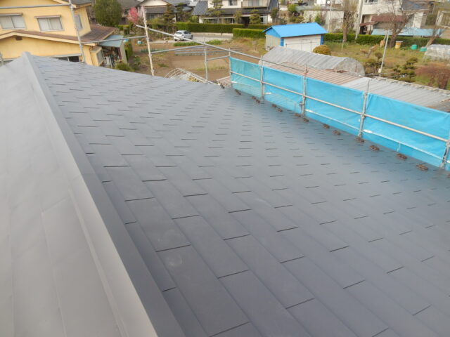 ルーフィングを施行した後に最後にガルバニウム鋼板を施行して完成となります。