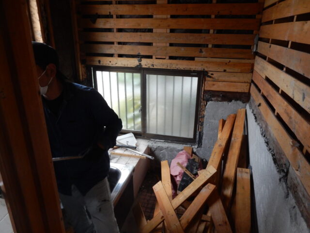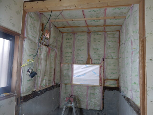 壁に元々断熱材が入っていなかったので、断熱材施工をしていきます!