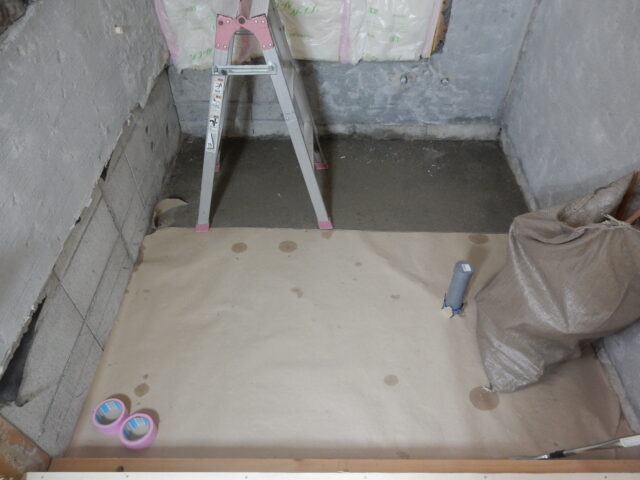 その次は床面をバリアフリーにするために床にコンクリートを施工をしていきます。