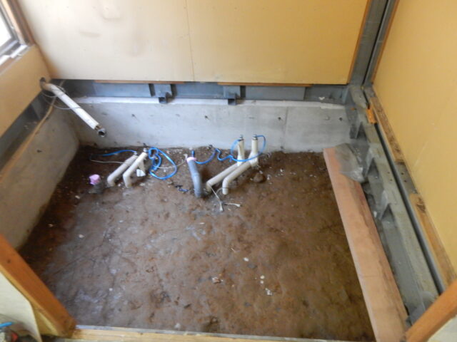 次の新しいユニットバス給排水の切り回しを行なっていきます。