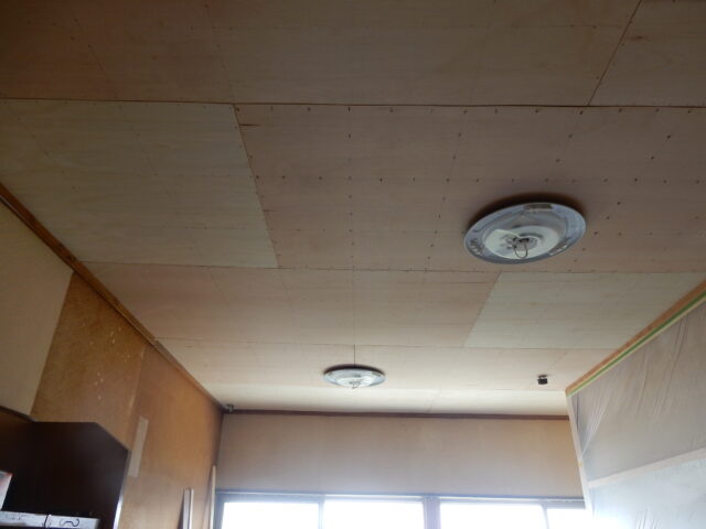 同様に天井面もクロスを張るために構造用合板で下地を作りクロスを張ることにしました。